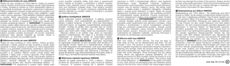 Wykonane w 100% z silikonu do kontaktu z żywnością: miękkie, trwałe, przyjemne w dotyku i bezpieczne do codziennych wodnych zabaw.