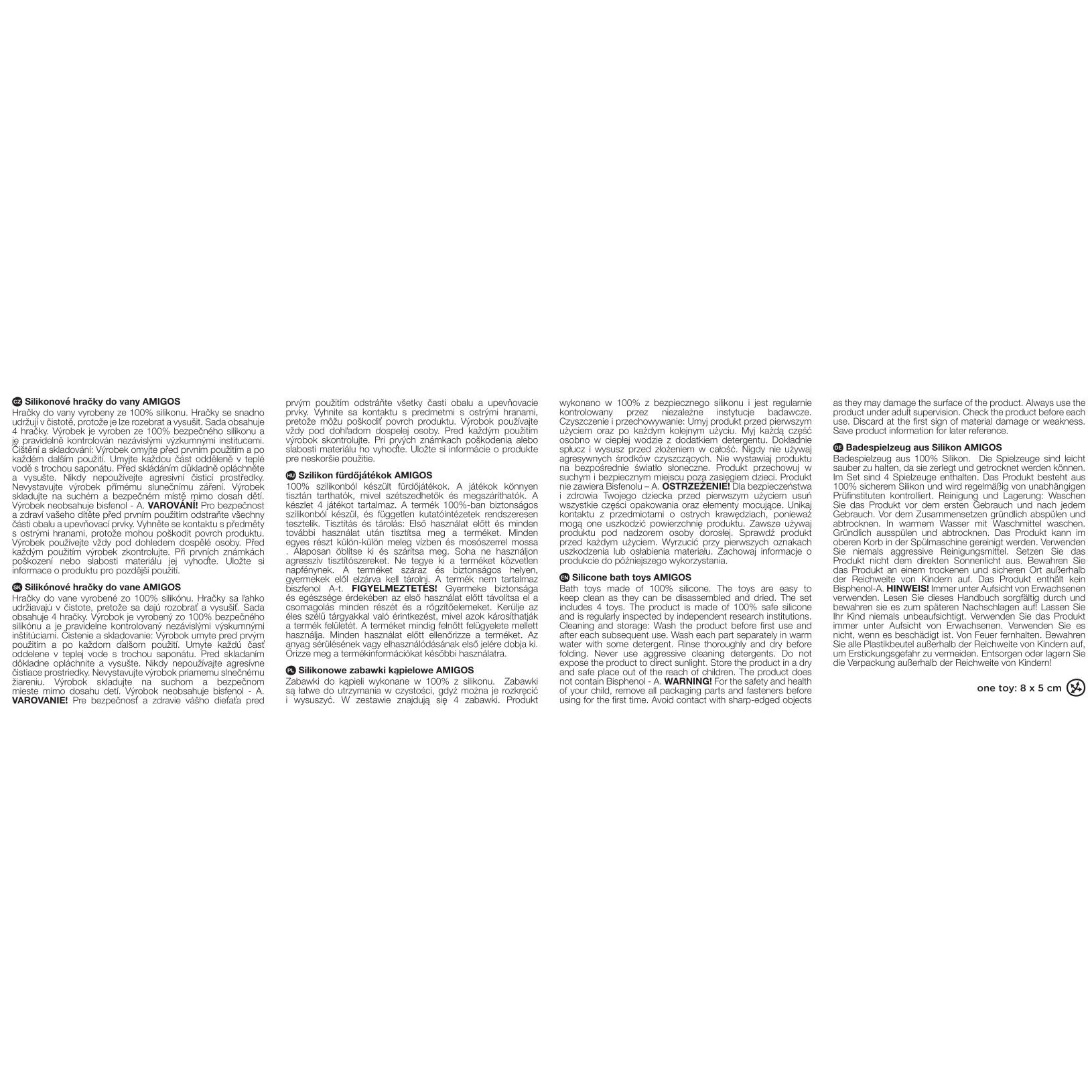 Praktyczna konstrukcja z dwóch części (górnej i dolnej) pozwala po kąpieli rozkręcić zabawki, dokładnie umyć i wysuszyć – bez resztek wody w środku. Dzięki kompaktowym wymiarom są stworzone do wanny, basenu i na wyjazdy.