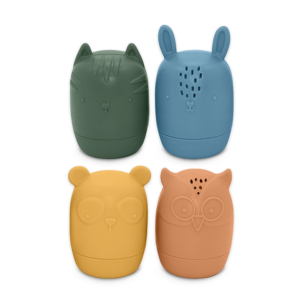 Odkryj urocze silikonowe zabawki do wody Petite&Mars Amigos – zestaw czterech zwierzątek (sowa, zając, kot i panda), które dzieci pokochają. Są miękkie, leciutkie i wykonane w 100% z silikonu do kontaktu z żywnością, bez BPA. Dzięki otworom do nabierania i spryskiwania wody zamienią kąpiel w zabawną i sensoryczną aktywność, wspierając przy tym motorykę małą. Można je łatwo rozłożyć i wyczyścić – idealne do wanny, basenu i w podróży.