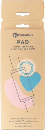Dostarczane w wytrzymałym opakowaniu PETITE&MARS. Proste zakładanie na większość pasów bezpieczeństwa w kilka chwil.
