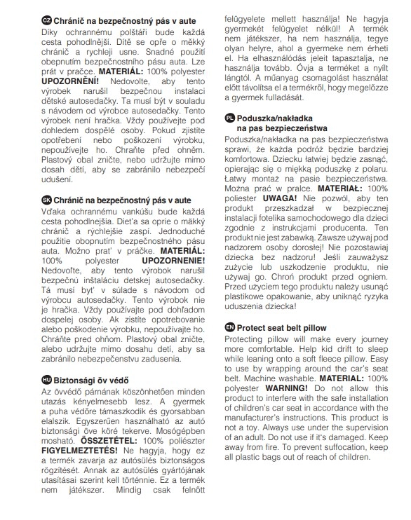 Montaż zajmuje moment – ochraniacz wystarczy owinąć wokół pasa i zabezpieczyć. Dzięki kompaktowym wymiarom świetnie pasuje do większości samochodowych pasów i można go bez problemu prać w pralce w 30 °C.