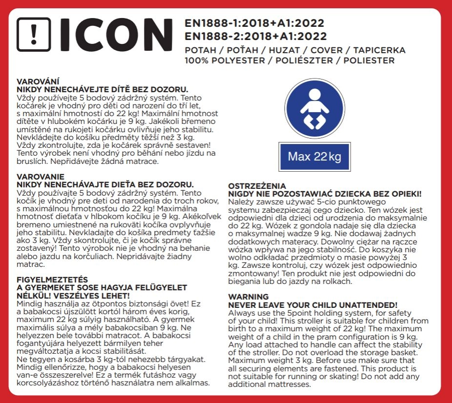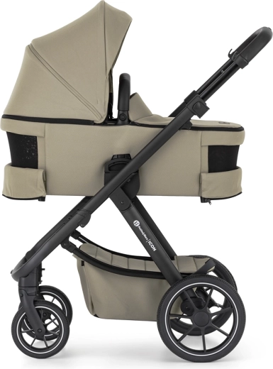 Przestronna gondola z materacykiem i magnetyczną wentylacją, siedzisko spacerowe z możliwością rozłożenia na płasko oraz 5-punktowe pasy z magnetyczną klamrą.