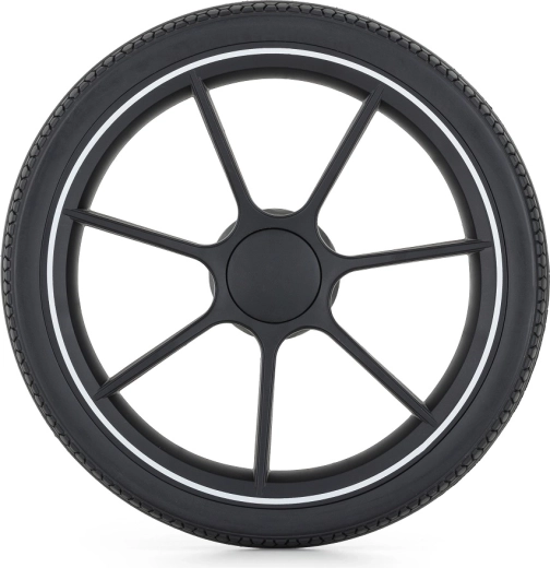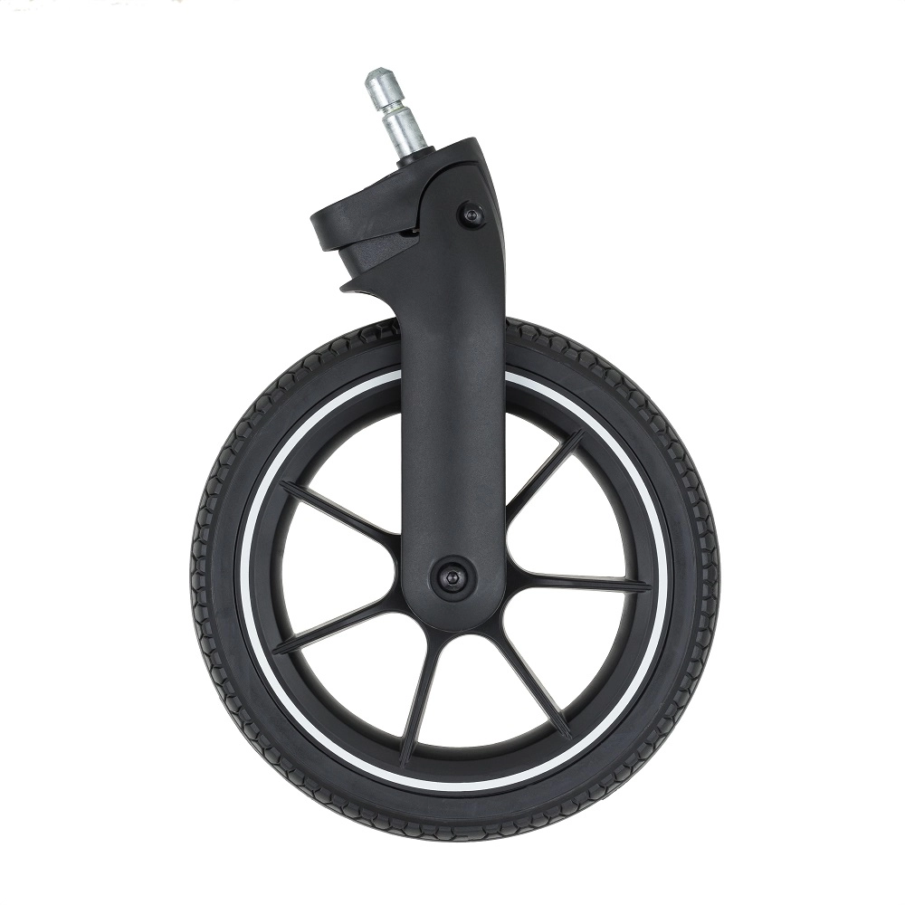Duże tylne i przednie koła z możliwością blokady oraz wysokiej jakości amortyzacja zapewniają stabilność i komfort na chodniku i w parku.