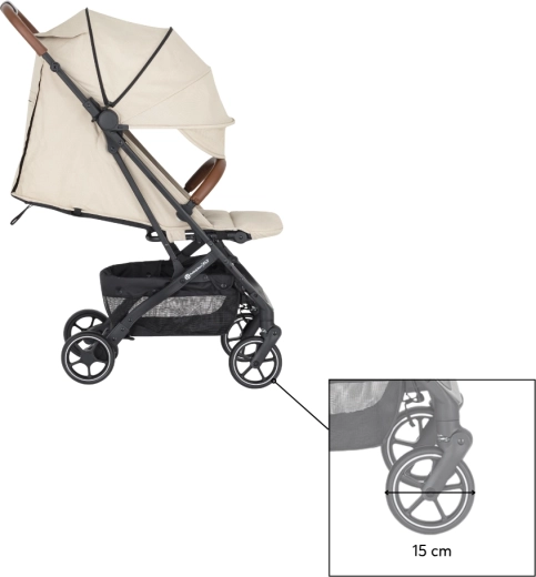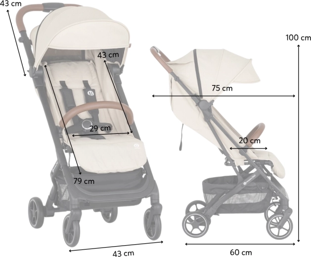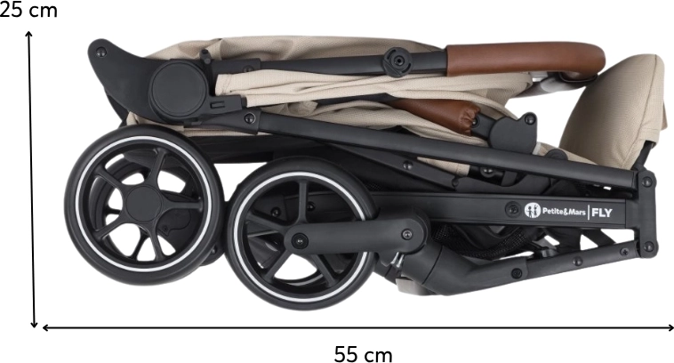 Wózek łatwo składa się do kompaktowego kształtu, po złożeniu stoi samodzielnie, a dzięki niskiej wadze wygodnie się go przenosi za pomocą zintegrowanego uchwytu. Idealny wybór w podróż, na miejskie spacery i do codziennego użytku.