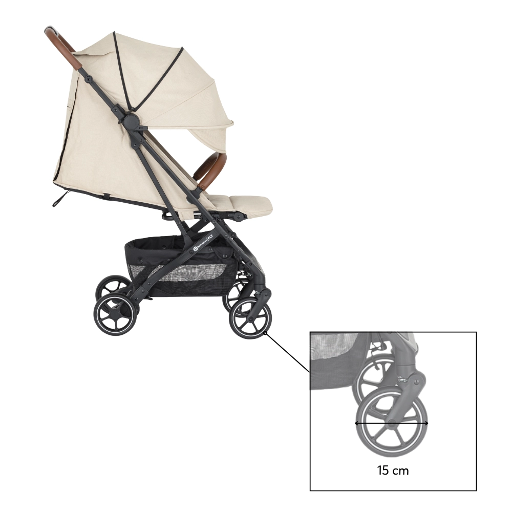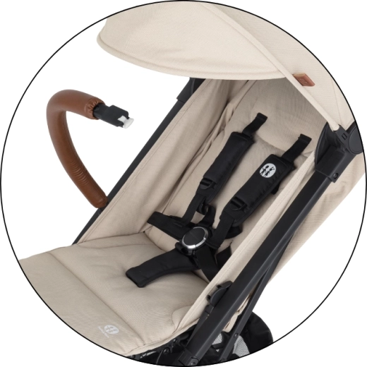 Odkrywaj świat z wózkiem Petite&Mars FLY w ponadczasowym odcieniu Sahara Beige. Ten lekki i poręczny spacerowy model zaprojektowano z myślą o komforcie dziecka i rodziców: od amortyzowanych, w pełni obrotowych przednich kół dla płynnej jazdy po mieście po oparcie regulowane do pozycji leżącej i regulowany podnóżek. Zintegrowane 5‑punktowe pasy z magnetyczną klamrą zwiększają bezpieczeństwo i ułatwiają zapinanie.