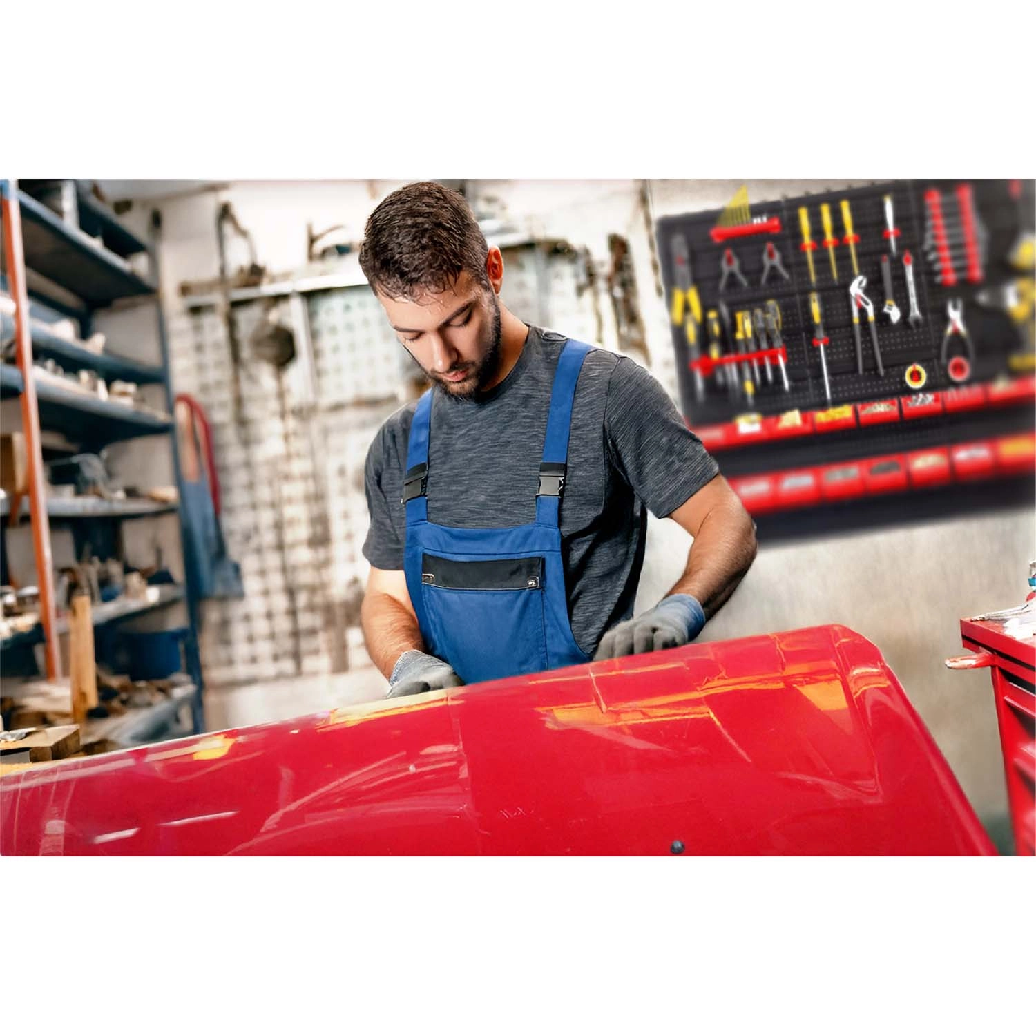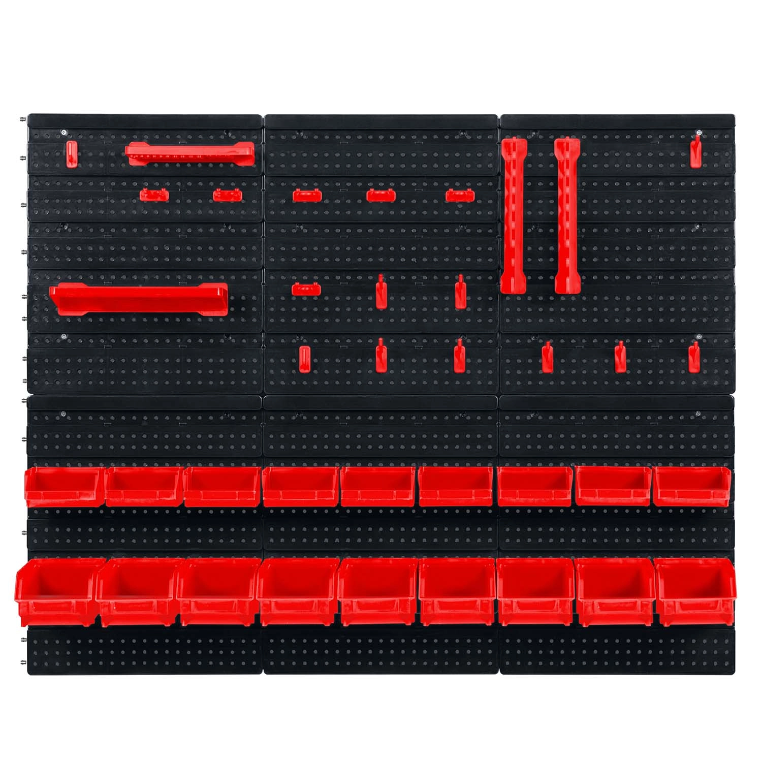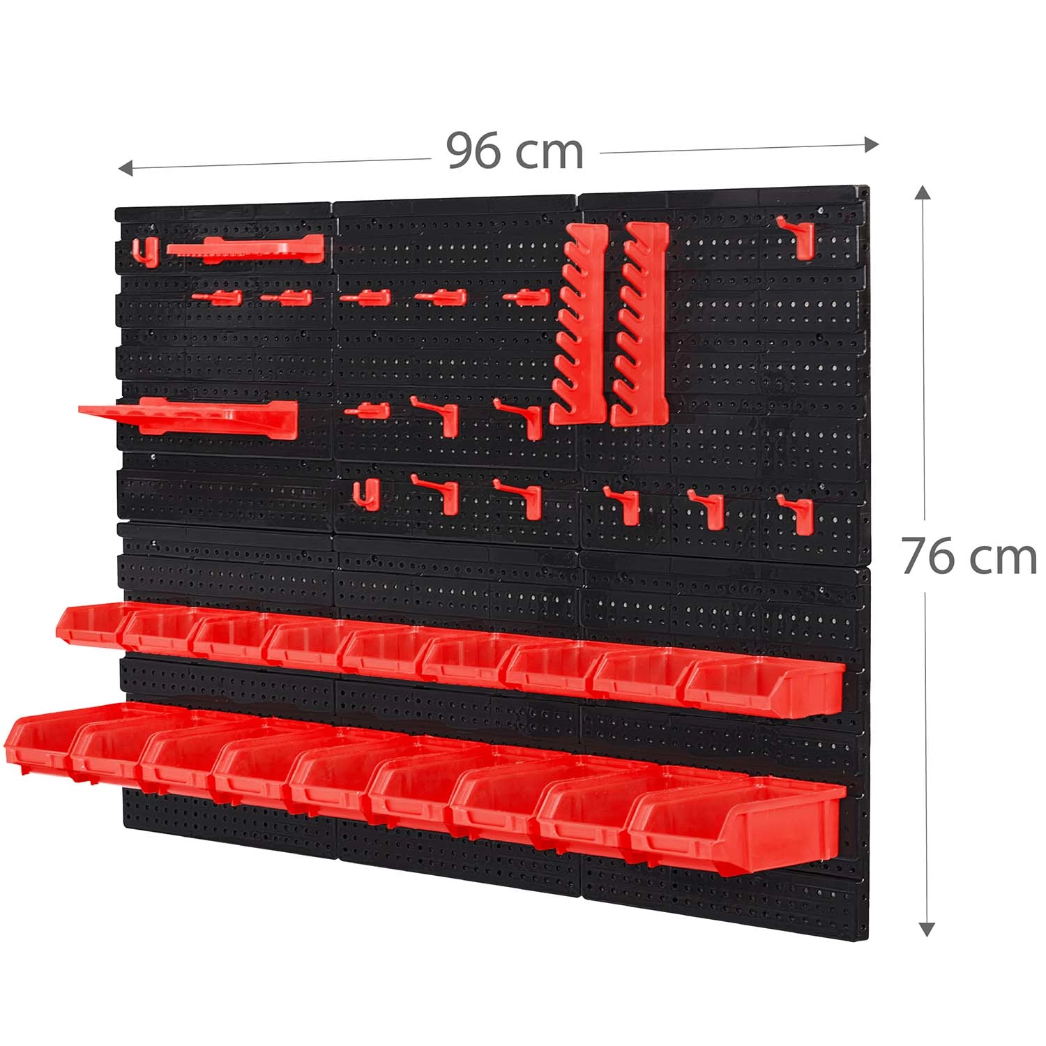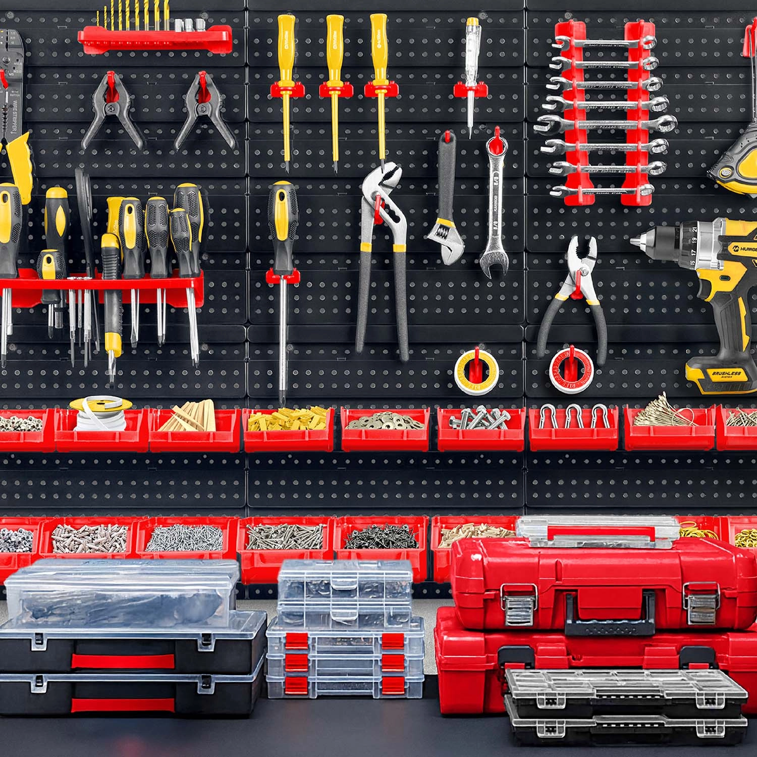 Kompletny ścienny organizer HUMBERG to niezbędny pomocnik dla każdego serwisu i domowego garażu. Dzięki modułowemu systemowi perforowanych paneli łatwo ułożysz rozmieszczenie dokładnie według swoich potrzeb. Solidne haki, uchwyty i półki utrzymają wkrętaki, szczypce i klucze, a kuwety w różnych rozmiarach przejrzyście posegregują elementy złączne.
