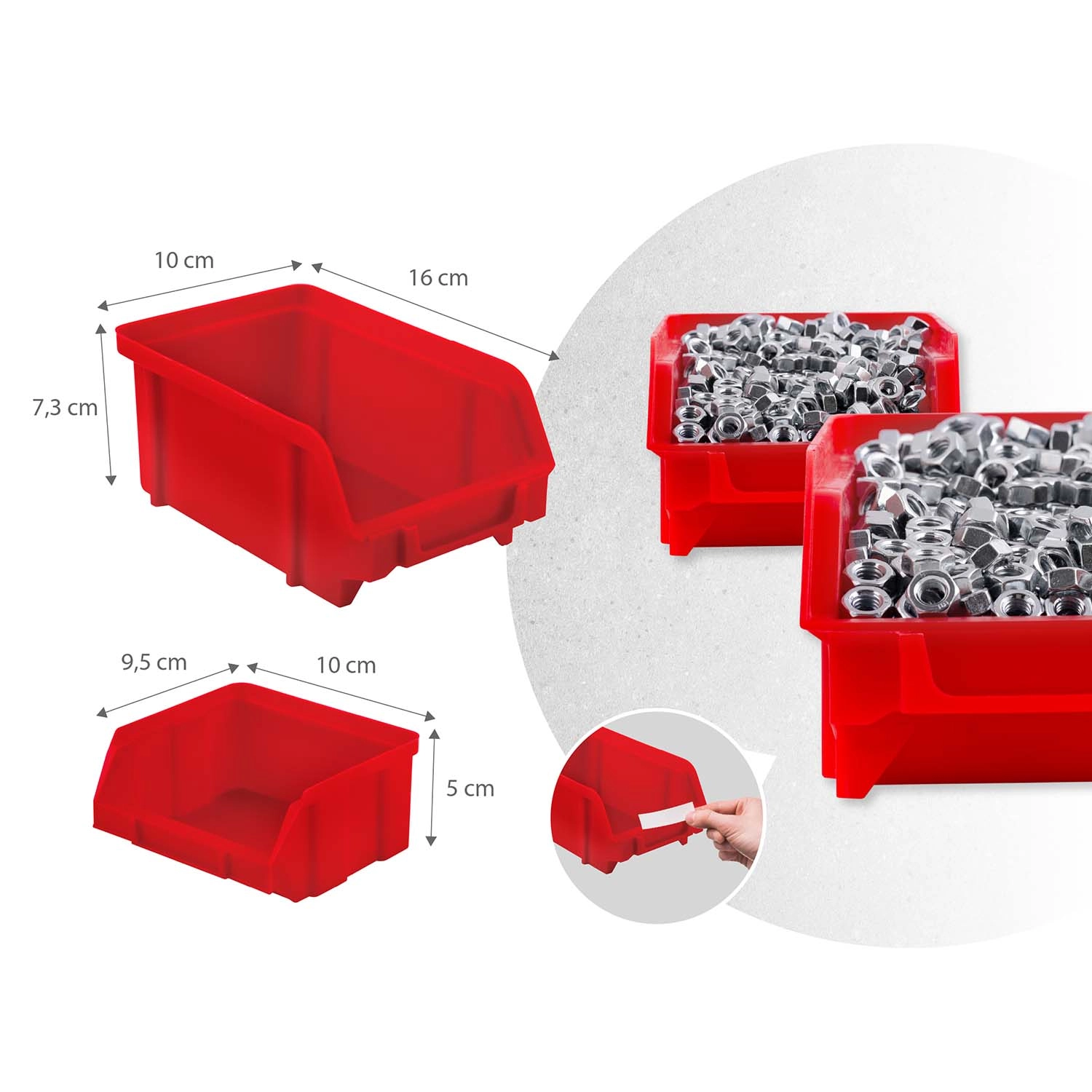 Kuwety, haki i półki do małych i dużych elementów