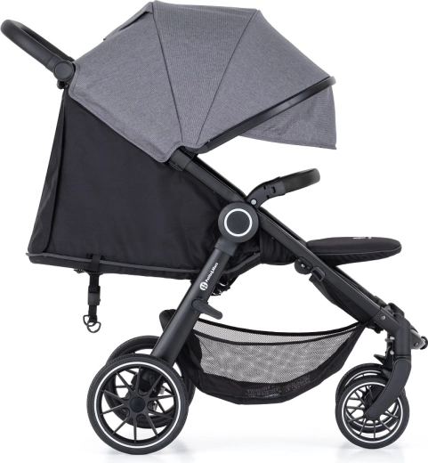 Dziecku zapewnia duże oparcie pleców, pięciopunktowe pasy oraz regulację oparcia i podnóżka niemal do leżenia dla jakościowego odpoczynku. Ekstra duża budka z okienkiem i SPF 50 chroni przed słońcem i niepogodą, a siatka w tylnej części poprawia cyrkulację powietrza. Praktyczne detale, takie jak regulowana wysokość rączki, odpinany pałąk z eko skóry i duży kosz na zakupy, ułatwiają codzienność.