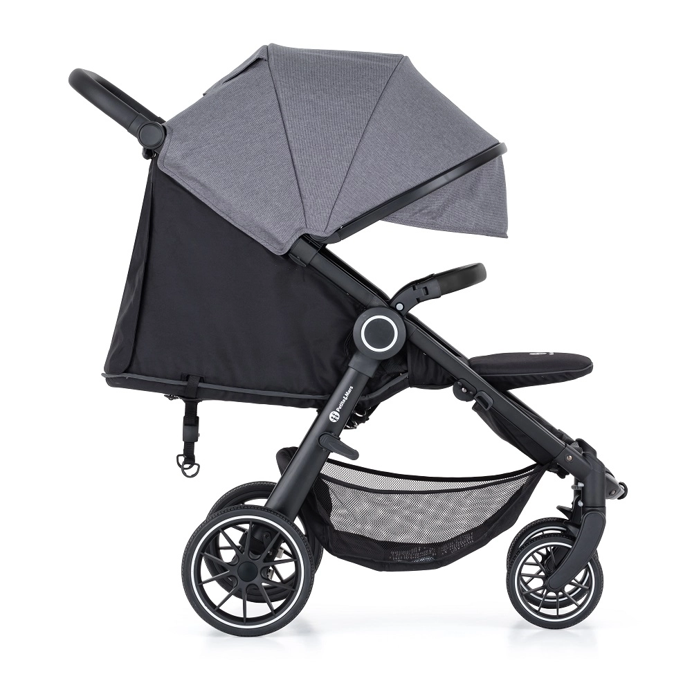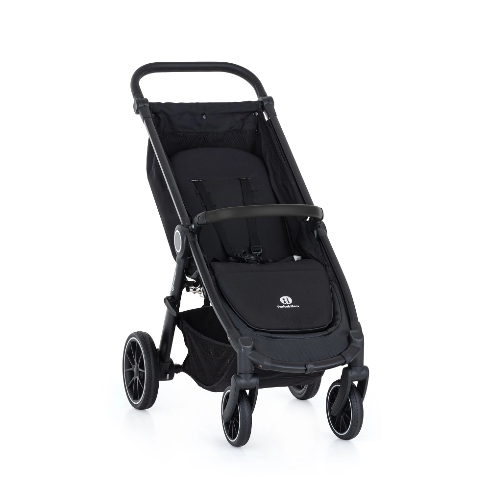 PETITE&MARS Street+ RWS Black Ultimate Grey to wózek spacerowy łączący niską wagę, niezawodność i komfort. Delikatna amortyzacja tłumi wstrząsy, a pełnogumowe koła RWS radzą sobie nawet na trudniejszych nawierzchniach bez obaw o przebicie. Dzięki szybkiemu składaniu jedną ręką i kompaktowym wymiarom po złożeniu łatwo go przenosić i przechowywać.