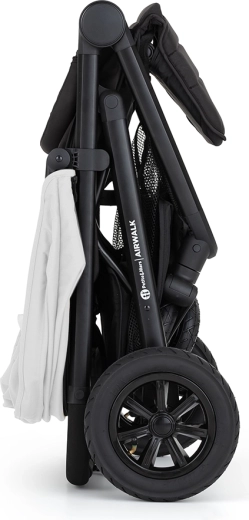 Prosty system składania pozwala, by wózek po złożeniu stał samodzielnie. Kompaktowy rozmiar oszczędza miejsce w samochodzie i w domu.