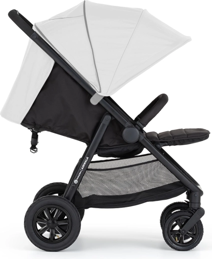 Wózek spacerowy PETITE&MARS Airwalk wyróżnia się stabilną konstrukcją z pompowanymi kołami, które radzą sobie zarówno w mieście, jak i w trudniejszym terenie. Dzięki prostemu składaniu wózek po złożeniu stoi sam i nie zajmuje dużo miejsca. Obszerne oparcie, regulacja niemal do pełnego leżenia oraz trzy pozycje podnóżka zapewniają wygodny sen i dłuższe spacery.
