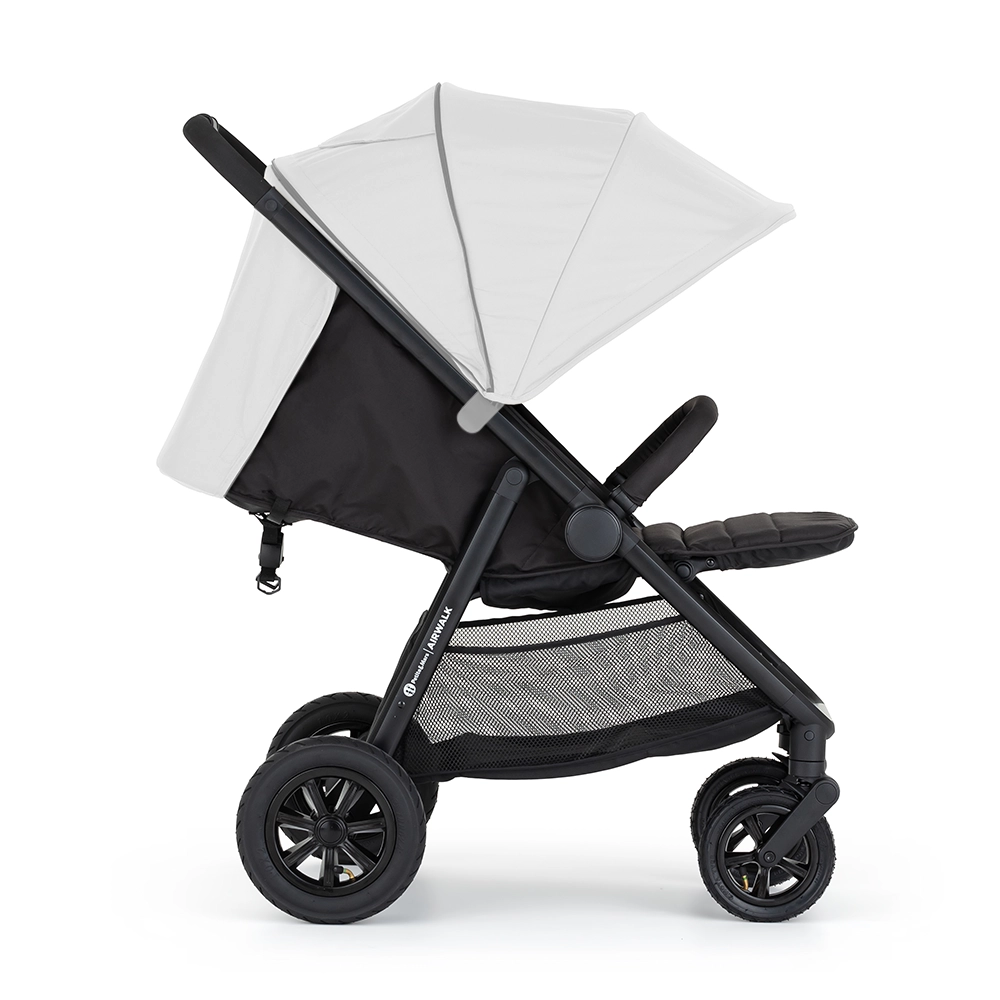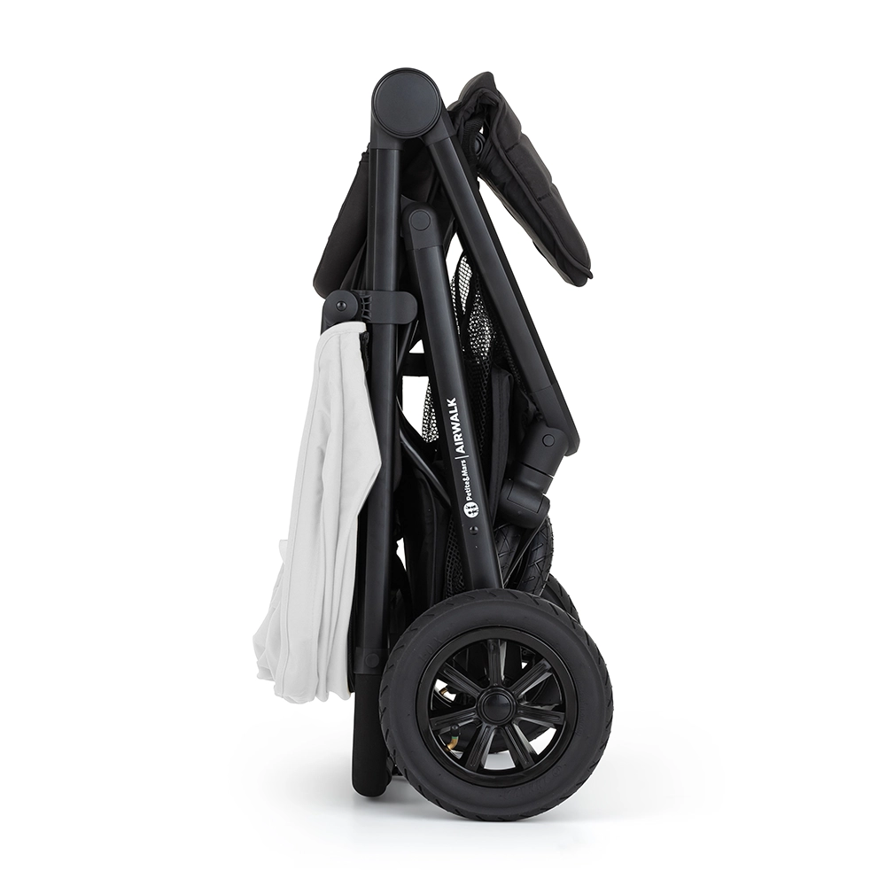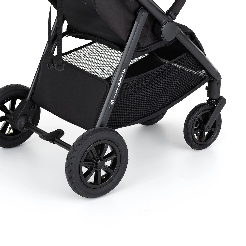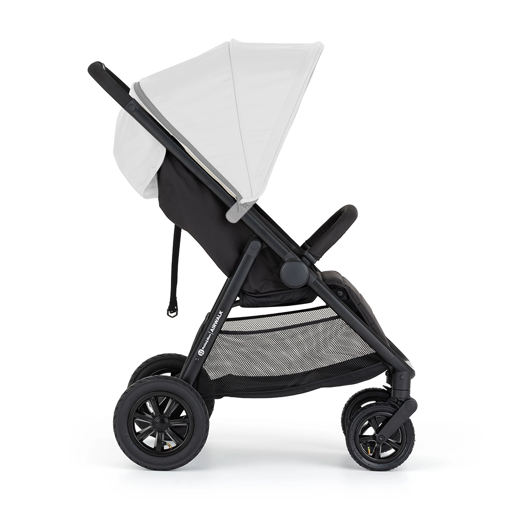 Odkryj lekką, a jednocześnie wytrzymałą konstrukcję wózka PETITE&MARS Airwalk z łatwym składaniem, pompowanymi kołami terenowymi i komfortową amortyzacją. Siedzisko można ustawić niemal na płasko, wyregulujesz też podnóżek, a dzięki magnetycznej klamrze 5‑punktowych pasów jazda jest bezpieczna i wygodna. Pojemny kosz pomieści do 3 kg. Budkę dokupujesz osobno i możesz ją w każdej chwili zmienić.