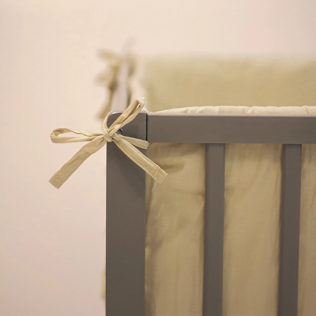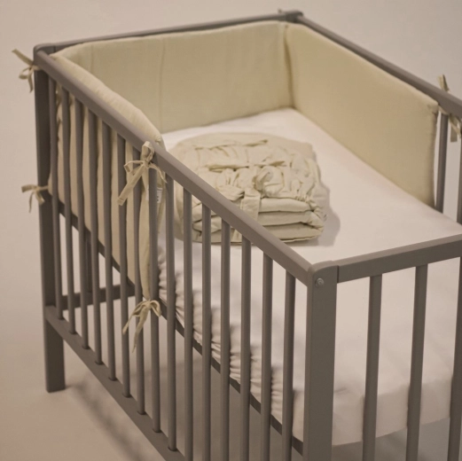 Długi, pikowany ochraniacz chroni maluszka przed uderzeniami o szczebelki i tworzy przytulne środowisko do spokojnego snu.