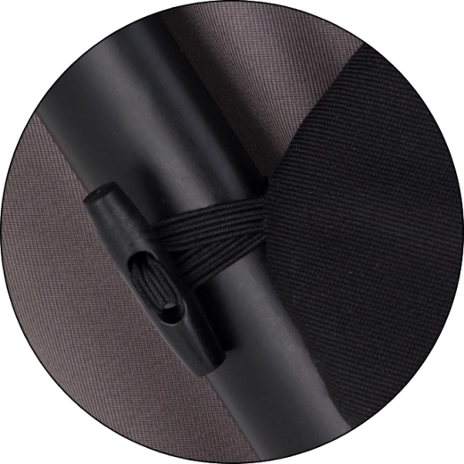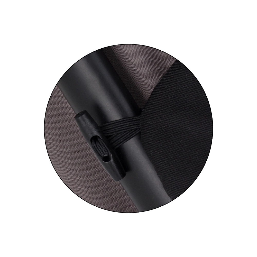 Elastyczne pętelki i zabezpieczające zapięcie gwarantują stabilne przymocowanie do konstrukcji wózka. Kompatybilna z wieloma markami.