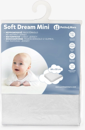 Nieprzemakalne prześcieradło z gumką PETITE&MARS Soft Dream Mini to idealny wybór do mniejszych łóżeczek. Łączy delikatny 100% bawełniany dżersej dla komfortu maluszka oraz ochronę materaca przed wilgocią. Dzięki elastycznej gumce na obrzeżu pozostaje na miejscu, nie marszczy się, a łóżeczko wygląda zawsze estetycznie.