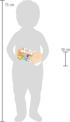 Wysokość około 10 cm i lekka konstrukcja ułatwiają trzymanie i manipulację. Idealny do zabawy w domu i w podróży.