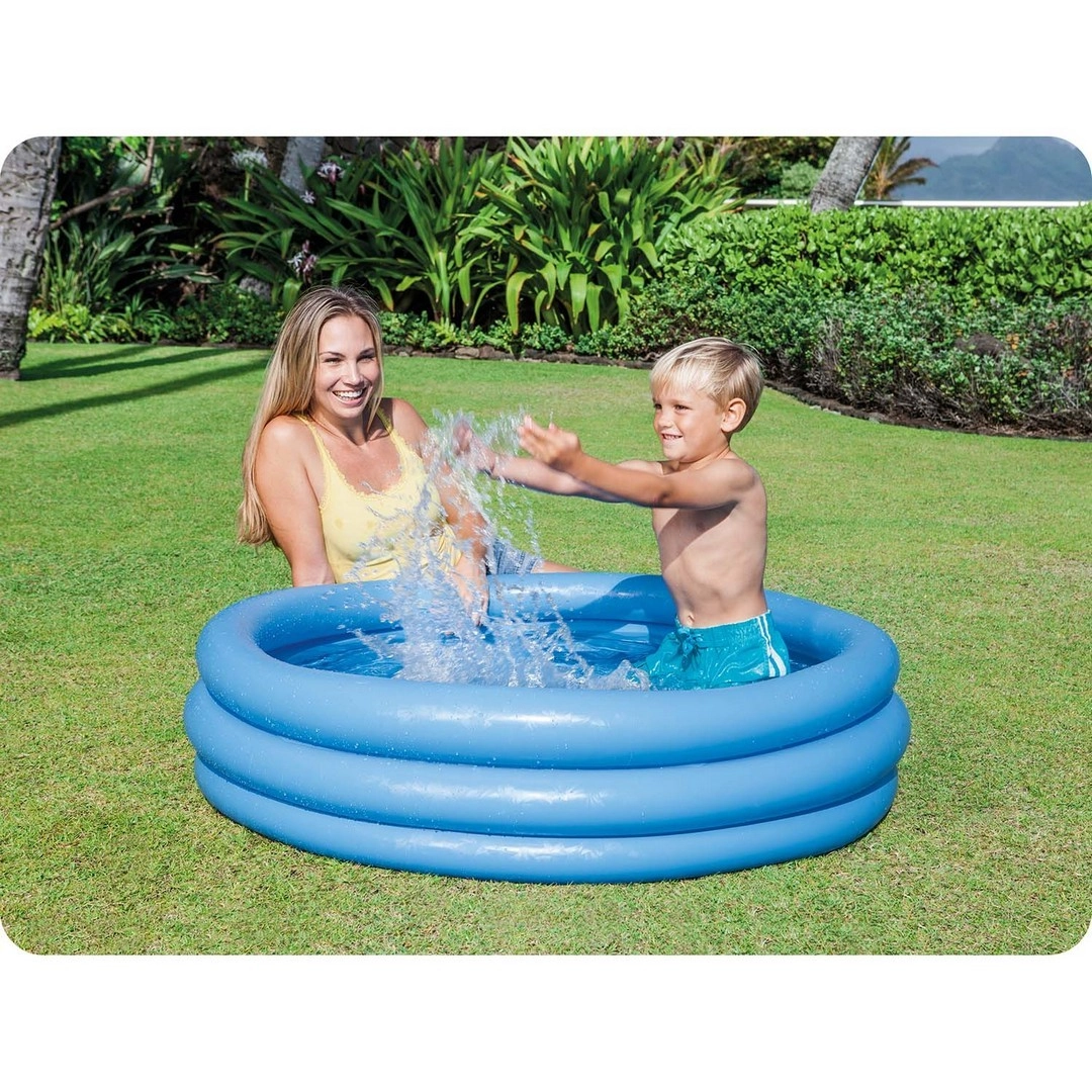 Niebieski nadmuchiwany basen Intex o wymiarach 114 × 25 cm jest lekki, bezpieczny i idealny do letniego orzeźwienia dla dzieci. Ma trzy nadmuchiwane pierścienie dla stabilności, wykonany jest z trwałego PVC i oferuje pojemność 156 l przy wysokości lustra wody 18 cm. W zestawie znajduje się łatka naprawcza, więc zabawa może trwać bez zmartwień.