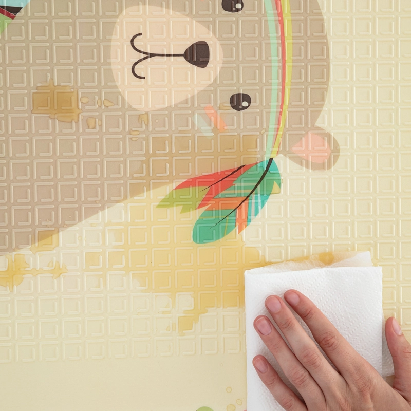 Mata jest dwustronna, z radosnymi motywami, dzięki czemu łatwo odświeży każdy pokój dziecięcy. Dzięki złożeniu na kilka części w mig ją uprzątniesz lub schowasz do praktycznej torby z zamkiem i uchwytami – idealna w podróży i do przenoszenia między pokojem, salonem a tarasem.