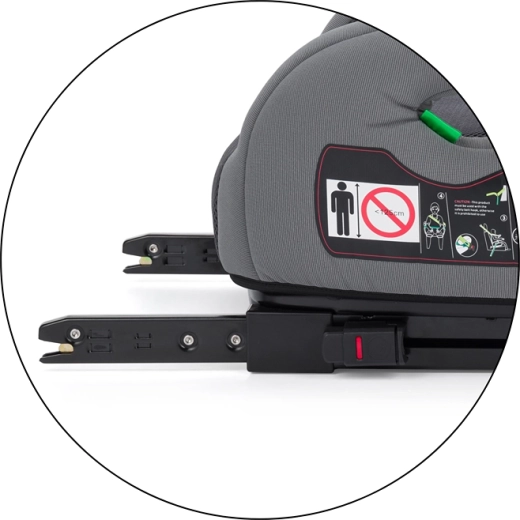 Zintegrowane złącza ISOFIX zapewniają pewną i szybką instalację, która zapobiega przesuwaniu się siedziska i zwiększa bezpieczeństwo podczas hamowania.