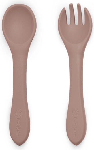 Praktyczny zestaw dziecięcych sztućców PETITE&MARS Take&Match Velvet Latte dla dzieci od 6 miesięcy zawiera łyżeczkę i widelec z bezpiecznego silikonu do kontaktu z żywnością. Dzięki miękkim końcówkom, ergonomicznym krótkim rączkom i delikatnemu dla dziąseł materiałowi ułatwia pierwsze kroki w samodzielnym jedzeniu. Sztućce są bez BPA, lekkie, antypoślizgowe i można je myć w zmywarce.