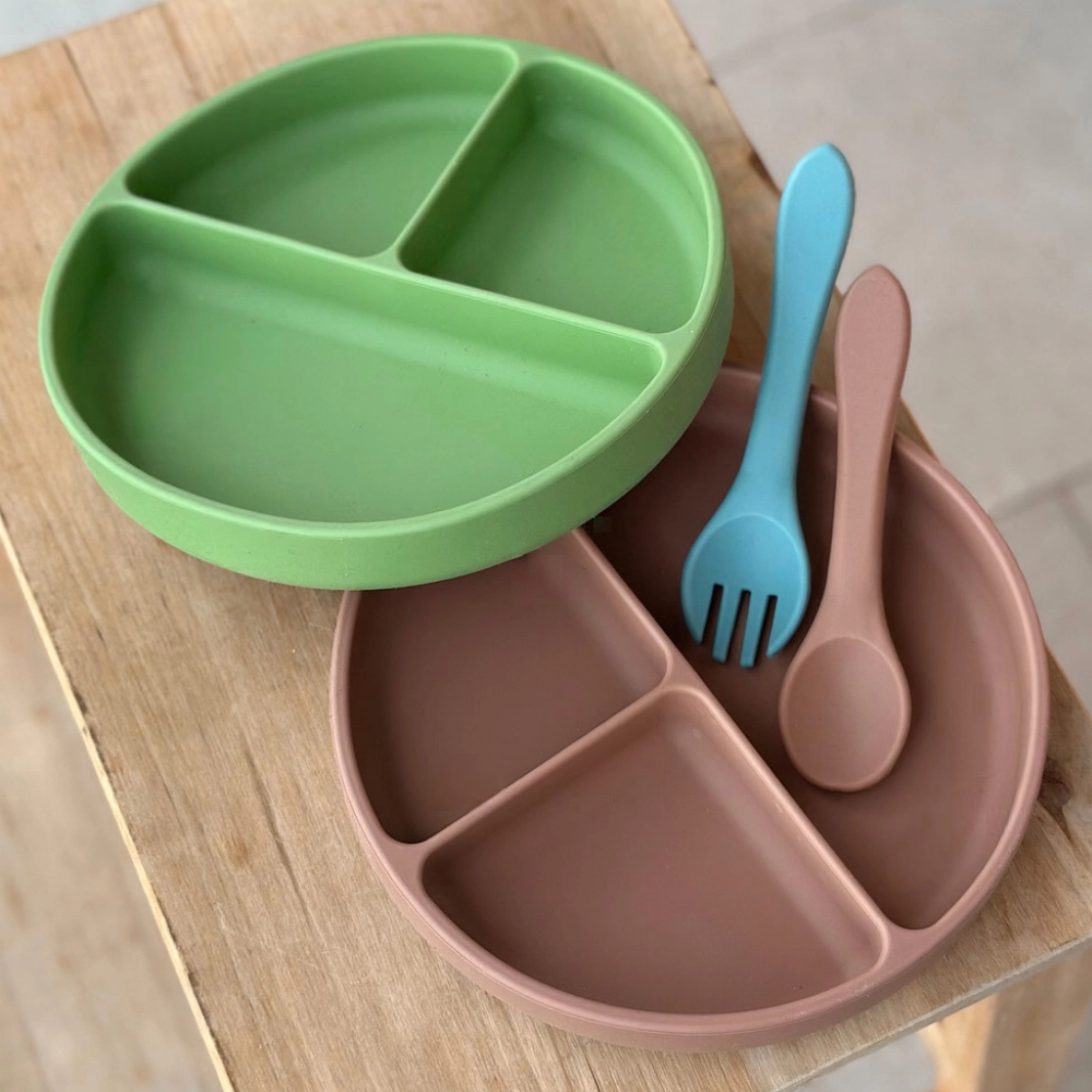 Miękki silikon do kontaktu z żywnością, wolny od BPA, jest łagodny dla wrażliwych dziąseł, a jednocześnie odporny na codzienne użytkowanie z ciepłymi i zimnymi posiłkami.