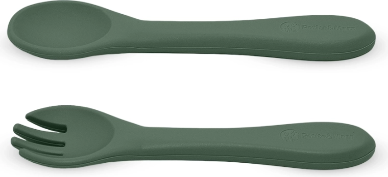 Zestaw silikonowych sztućców PETITE & MARS Take & Match w odcieniu Misty Green ułatwia każde karmienie. Krótkie, solidne rączki pasują do drobnych dłoni, a miękkie końcówki są łagodne dla wrażliwych dziąseł. Dzięki silikonowi spożywczemu bez BPA sztućce są bezpieczne do codziennego użytku – od pierwszych przecierów po samodzielne jedzenie.