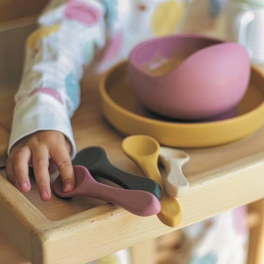 Krótkie, zaokrąglone rączki ułatwiają chwyt i kontrolę ruchów – idealne do pierwszych prób samodzielnego jedzenia bez zbędnych wpadek.