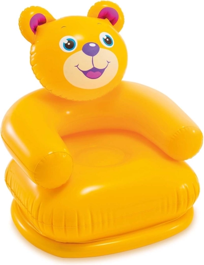 Nadmuchiwany fotelik dziecięcy Intex Wesołe zwierzątka łączy wygodę i zabawę. Wyraziste kolory i sympatyczne motywy misia lub tygryska dzieci pokochają od razu. Fotelik jest lekki, łatwy do przenoszenia i dzięki gładkiej, winylowej powierzchni również prosty w czyszczeniu – idealny do pokoju dziecięcego, bawialni i w podróży.