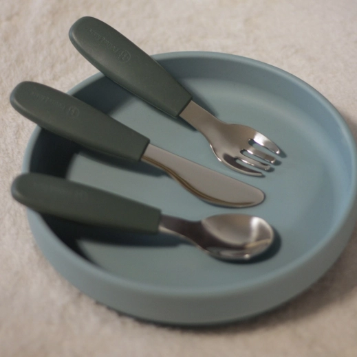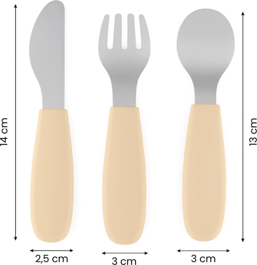 - Kompletny zestaw 3 szt.: łyżeczka, widelec i bezpieczny nóż