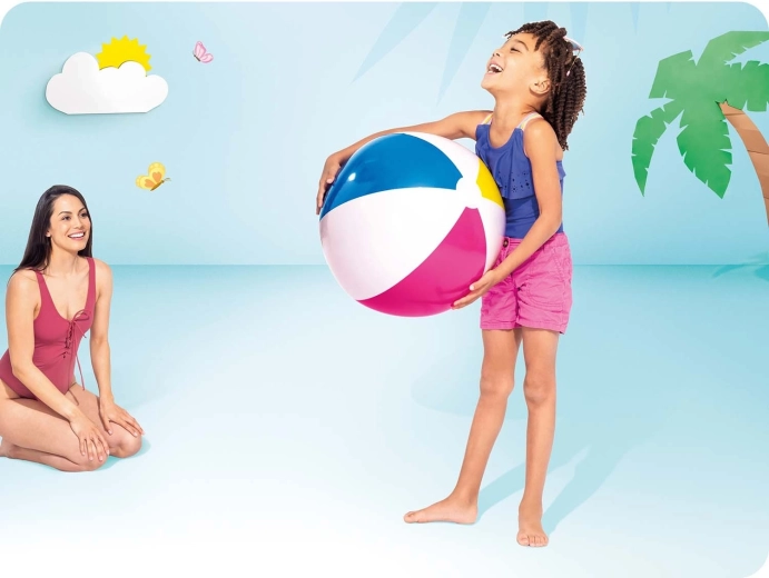 Nadmuchiwana plażowa piłka Intex w tęczowym wzorze to świetny towarzysz letnich przygód. Dzięki średnicy 61 cm łatwo się ją łapie i odbija, dlatego nadaje się dla młodszych i starszych dzieci. Wytrzymały winyl (PVC) zapewnia dłuższą żywotność i beztroską zabawę nad wodą.