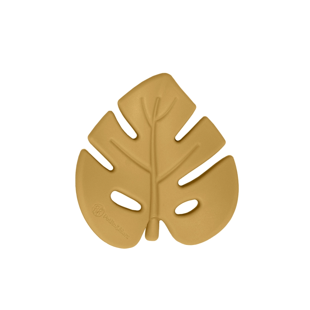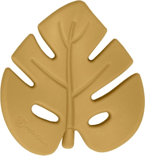 Krótka łyżeczka i widelec z miękkimi krawędziami do bezpiecznej nauki samodzielnego jedzenia. Gryzak w kształcie liścia masuje dziąsła i można go schładzać.