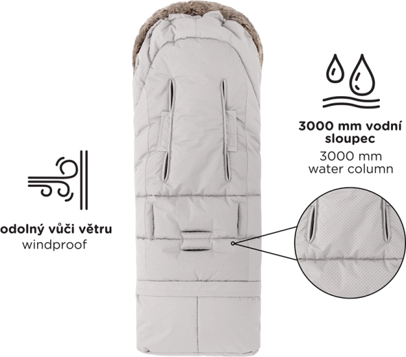 Dzięki rozwiązaniu 4w1 śpiworek wykorzystasz w gondoli i wózku spacerowym oraz w foteliku samochodowym. Pionowe otwory i 6 uniwersalnych przejść na pasy zapewniają szeroką kompatybilność. Odpinana dolna część z materiału łatwego do czyszczenia jest idealna na brudne buciki. Rękawice Furry przypniesz do każdej rączki wózka za pomocą mocnych nap, mają ciepły polar, powłokę wodoodporną i uniwersalny rozmiar odpowiedni także dla taty.