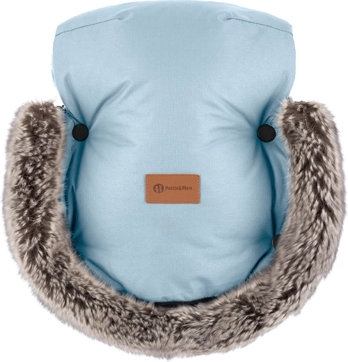 Zimowy zestaw PETITE&MARS łączy uniwersalny śpiworek Arctic 4w1 i rękawice Furry w dopasowanym odcieniu Sky Whisper. Śpiworek jest ekstra długi (do 110 cm), miękko wyściełany z ciepłą polarową podszewką, ma wodoodporną i wiatroodporną powierzchnię z BIONIC-FINISH ECO oraz praktyczny przedni zamek dla łatwego dostępu do dziecka. Sznurki formują ciepły kaptur, odpinane futerko chroni przed wiatrem, a antypoślizgowy tył (ABS) utrzymuje śpiworek na miejscu.