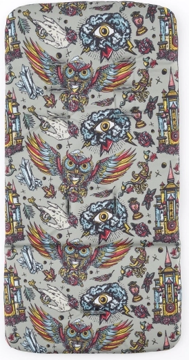 Praktyczne okienko kontrolne z cichym magnesem pozwala utrzymać kontakt z dzieckiem bez zakłóceń. Budkę łatwo zakłada się i zdejmuje z konstrukcji, a w zestawie znajdziesz także trzyczęściowe ochraniacze na pasy oraz dwustronną wkładkę wewnętrzną w tym samym wzorze.