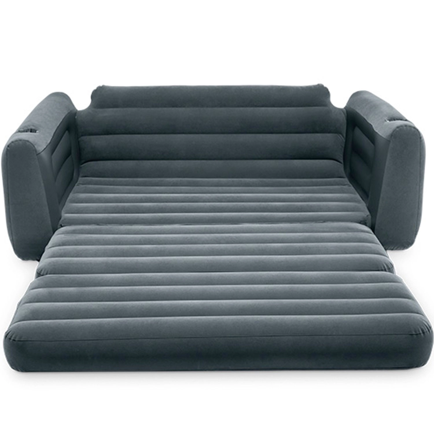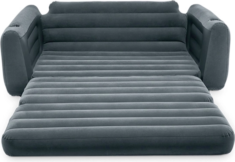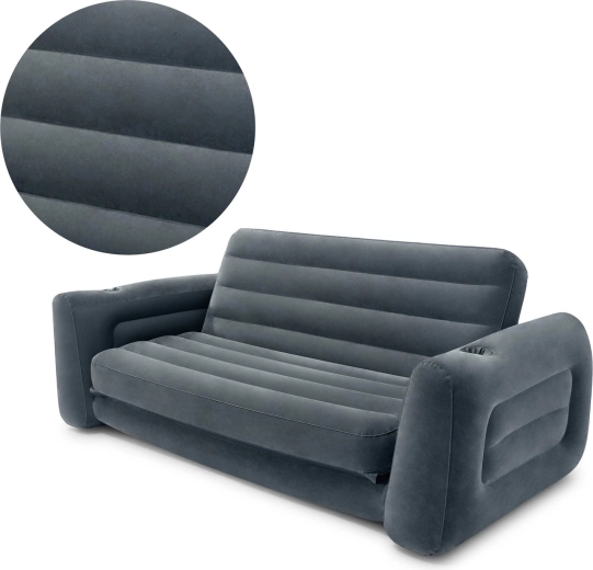 Nadmuchiwana sofa 2w1 od INTEX łączy wygodne siedzenie z pełnowartościowym miejscem do spania. Wysokie oparcie i stabilne podłokietniki zapewniają stabilność oraz przyjemne podparcie bez bólu pleców. Welurowa powierzchnia jest miękka w dotyku, a jednocześnie odporna i łatwa w czyszczeniu – wystarczy przetrzeć wilgotną ściereczką.