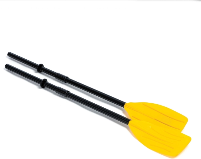 - Wiosła (plastik, Intex #59623), ręczna pompka (tłokowa, Intex #68614)