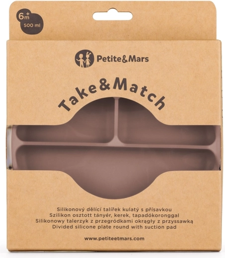 Silikonowy talerzyk z przegródkami PETITE&MARS z kolekcji TAKE&MATCH pomaga dzieciom uczyć się samodzielnego jedzenia. Trzy przestronne przegródki utrzymują potrawy oddzielone, zaokrąglone kształty ułatwiają nabieranie, a mocna przyssawka pewnie trzyma się gładkiej powierzchni. Trwały silikon spożywczy bez BPA jest bezpieczny do ciepłych i zimnych posiłków.