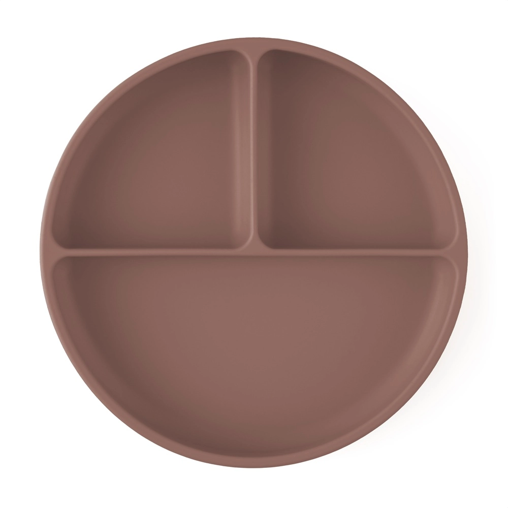 Praktyczny okrągły talerzyk z silikonu spożywczego z przyssawką i trzema przegródkami utrzymuje jedzenie oddzielone i bezpiecznie na miejscu. Jest bez BPA, odpowiedni do kuchenki mikrofalowej, zmywarki oraz lodówki, idealny do samodzielnego jedzenia dla dzieci od 6 miesięcy.