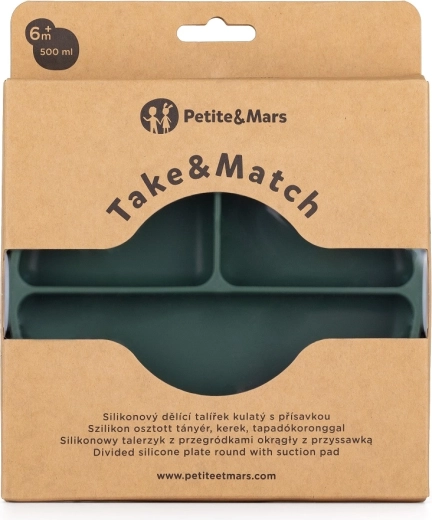 Praktyczny i wytrzymały silikonowy talerz PETITE&MARS Take&Match Misty Green został zaprojektowany do wygodnego i czystego jedzenia w domu i w podróży. Trzy oddzielne sekcje utrzymują potrawy przejrzyście rozdzielone, co wspiera rozwój samodzielnego jedzenia oraz lepsze postrzeganie smaków i tekstur. Miękki, a jednocześnie solidny silikon jest delikatny dla dziecięcych dziąseł i odporny na codzienne użytkowanie.