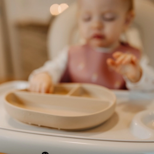 Talerz stabilnie trzyma się stołu lub tacki krzesełka, dzięki czemu nie przesuwa się podczas karmienia. Idealny do samodzielnego jedzenia bez zbędnego bałaganu.