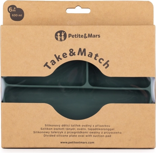Odkryj owalny dzielony talerz PETITE&MARS z linii TAKE&MATCH, który ułatwia dzieciom pierwsze kroki w samodzielnym jedzeniu. Trzy przestronne sekcje utrzymują posiłek przejrzyście oddzielony, owalny kształt daje więcej miejsca, a mocna przyssawka stabilnie trzyma talerz na stole lub tacce krzesełka do karmienia.