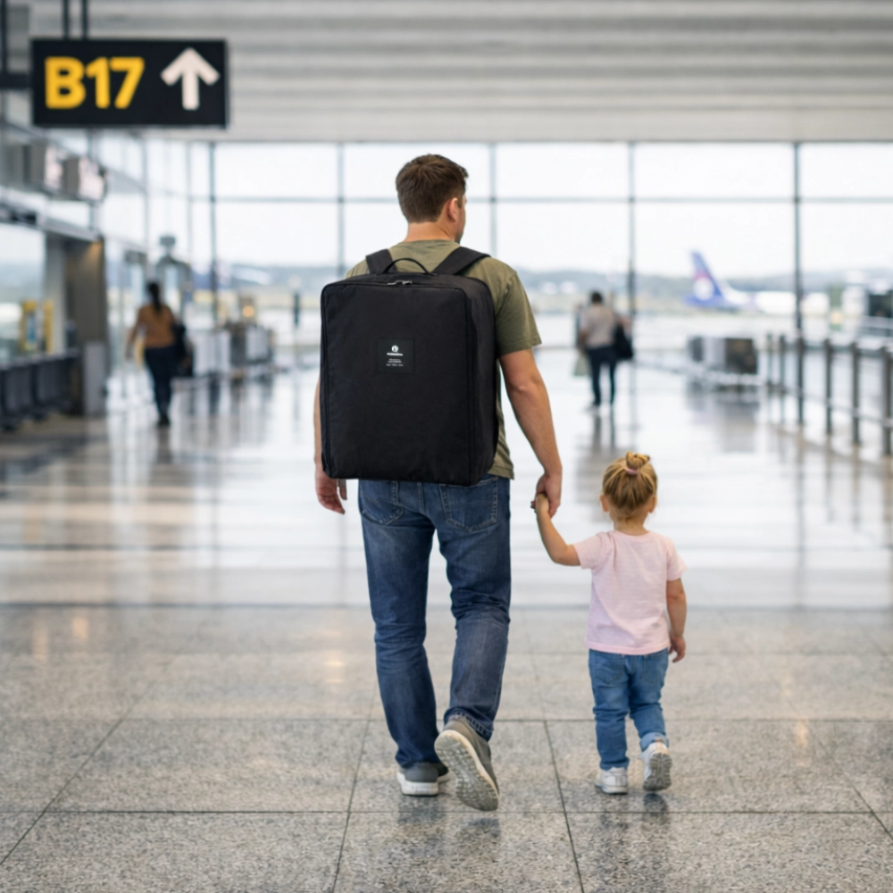 Dzięki regulowanym paskom i praktycznemu uchwytowi wybierzesz najwygodniejszy sposób noszenia – na plecach lub w dłoni. Torba została zaprojektowana z myślą o małych wózkach spacerowych i pomaga chronić je przed zabrudzeniami, uszkodzeniami mechanicznymi oraz wilgocią podczas transportu i przechowywania.