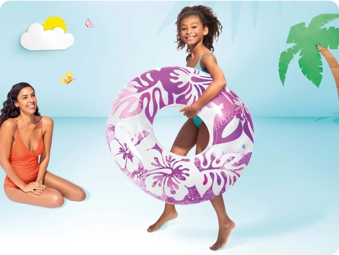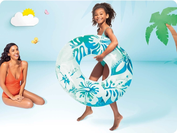 Nadmuchiwane koło INTEX Hawaje wyróżnia się przezroczystym winylem z tropikalnym, kwiatowym nadrukiem w atrakcyjnych kolorach. Idealne do relaksu na wodzie i beztroskiej zabawy. Dzięki wysokiej jakości wykonania z mocnego PVC koło jest odporne na drobne otarcia i gotowe na całe lato pełne frajdy.