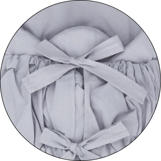 Praktyczne tasiemki umożliwiają pewne, a jednocześnie delikatne otulenie oraz łatwe dopasowanie stopnia przylegania do potrzeb dziecka i rodziców.