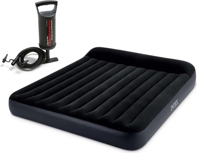 Dmuchany materac INTEX dla dwóch osób to niezawodne rozwiązanie dla gości, na kemping i do codziennego relaksu. Konstrukcja z włóknami Fiber-Tech oraz wewnętrznymi komorami Dura-Beam gwarantuje wytrzymałość, równomierne podparcie ciała i długą żywotność bez nieprzyjemnego zapadania. Miękka, flokowana (welurowa) powierzchnia jest przyjemna w dotyku i zapobiega ześlizgiwaniu się prześcieradła.