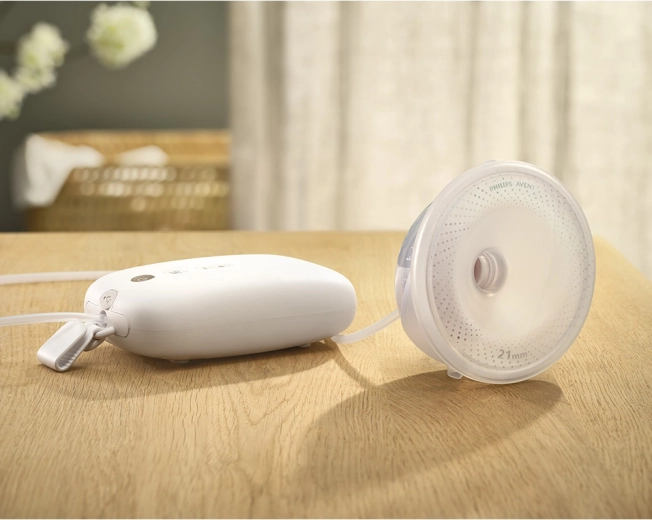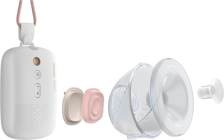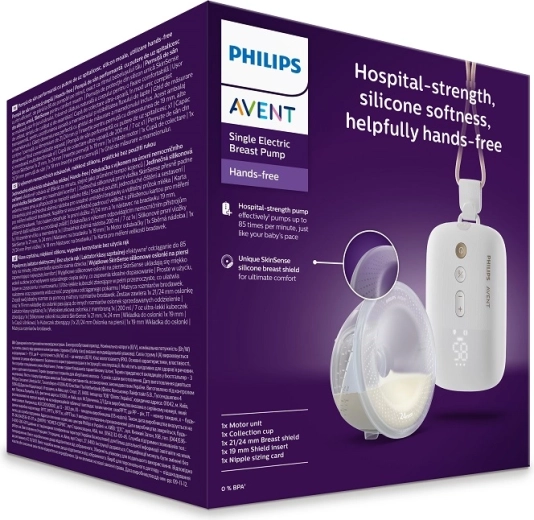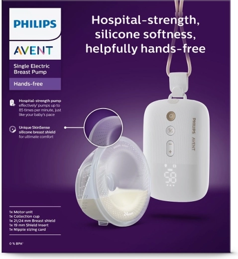 Philips Avent Hands‑Free Premium Plus zapewnia swobodę podczas karmienia i odciągania. Dzięki lekkiej, w pełni przezroczystej nakładce/kubkowi masz stały podgląd przepływu mleka, a inteligentny silnik pracuje w rytmie zbliżonym do ssania dziecka, zapewniając delikatne i skuteczne odciąganie. Cicha praca inspirowana technologią szpitalną gwarantuje dyskretne użytkowanie w domu i w podróży.