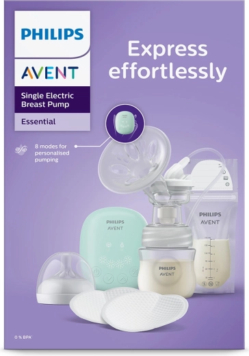 Elektryczny laktator Philips Avent Essential zapewnia wygodne i delikatne odciąganie zawsze, gdy tego potrzebujesz. Oferuje 4 + 4 poziomy ustawień do dopasowania siły i rytmu, pamięć ulubionego trybu, kompaktową konstrukcję oraz łatwe czyszczenie dzięki minimalnej liczbie części. Miękka, dopasowująca się silikonowa wkładka wspiera naturalny wypływ mleka i komfort podczas każdego użycia.