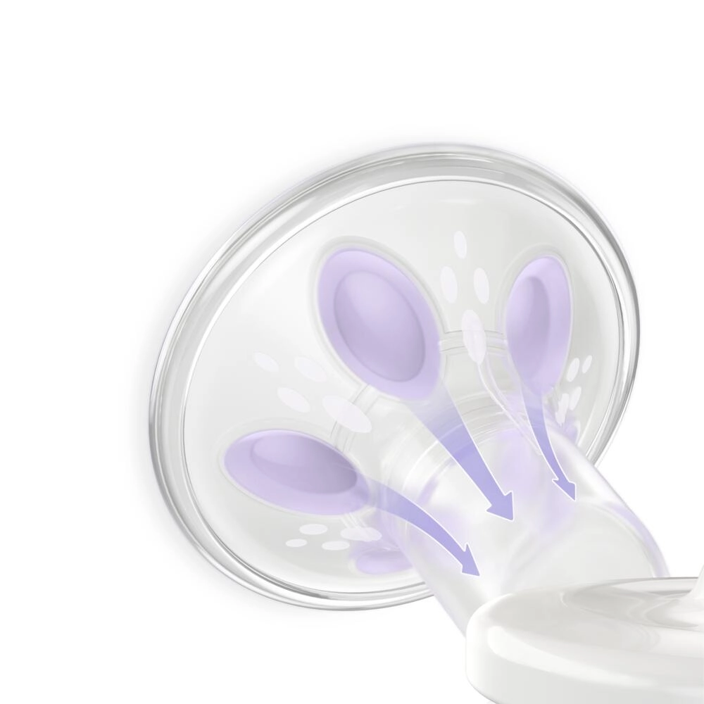 Szeroki, miękki brzeg z elastycznymi poduszeczkami delikatnie stymuluje i zapewnia wygodne przystawienie, co wspiera skuteczne i łagodne odciąganie bez zbędnego nacisku.