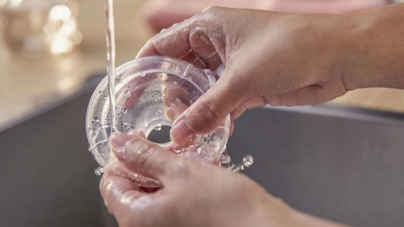 Laktator szybko rozkłada się na kilka części, a gładkie powierzchnie umożliwiają dokładne opłukanie i higieniczną pielęgnację po każdym użyciu.
