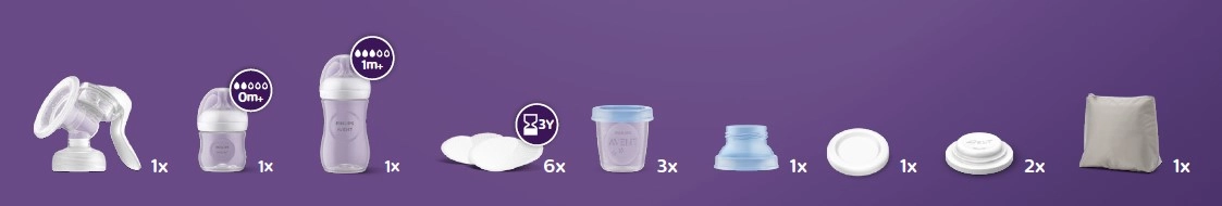 Zestaw startowy PHILIPS AVENT zapewnia wszystko, czego mama potrzebuje na początku karmienia piersią i odciągania. Ręczny laktator z miękką silikonową wkładką delikatnie masuje pierś i pomaga naturalnie uruchomić wypływ mleka. Dzięki kompaktowej konstrukcji i ergonomicznej rączce odciąganie jest szybkie, ciche i łatwe w obsłudze – kiedy chcesz i gdziekolwiek jesteś.